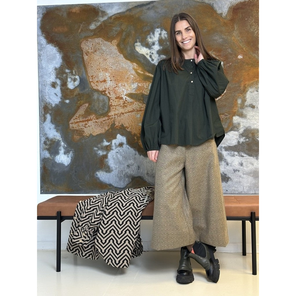 Skrålommer foran og paspellommer bagpå giver bukserne et elegant og funktionelt udtryk. Modellen har god længde til læggen og massere af vidde forneden, hvilket skaber en afslappet, men velklædt silhuet – perfekt til både hverdagsbrug og mere formelle anledninger.