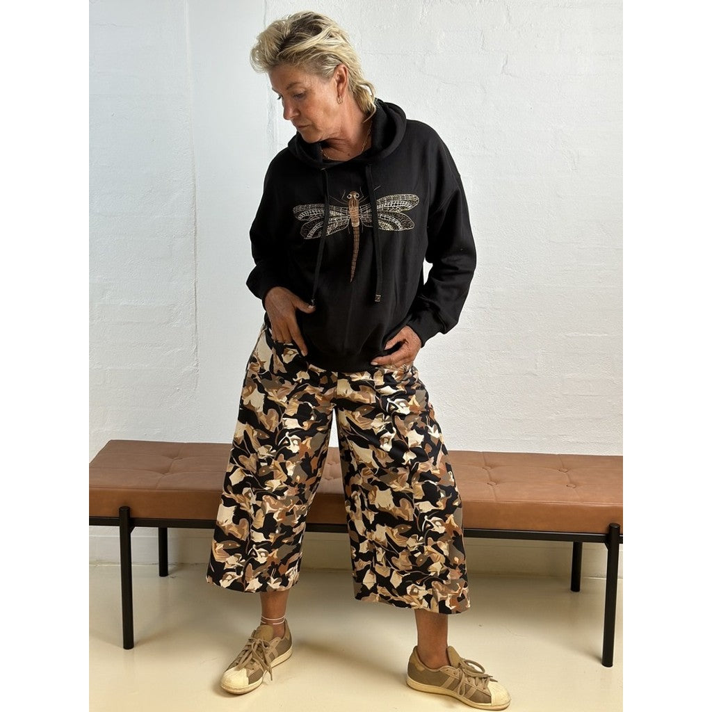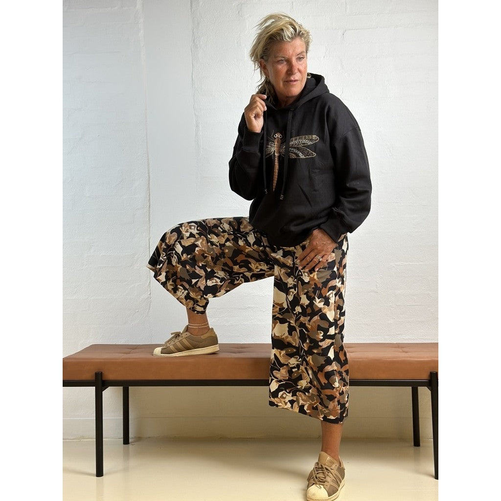 Den rundhalsede udskæring og den store hætte med snører tilføjer både stil og funktionalitet. Hoodien er prydet med vores smukke guldsmedbroderi på brystet, som giver et eksklusivt touch til det afslappede look.