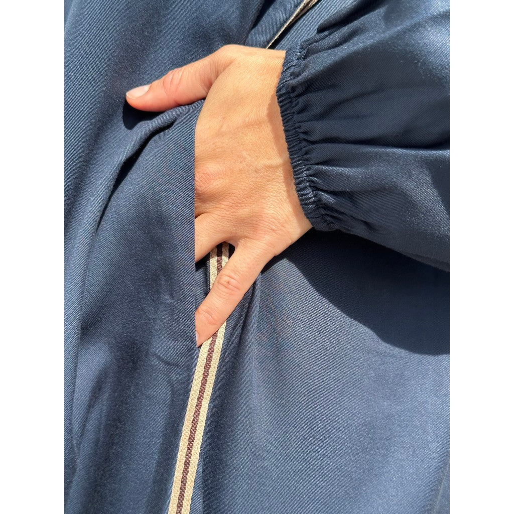 Lange ærmer med elastik i enden, som gør den let kan skubbes op.