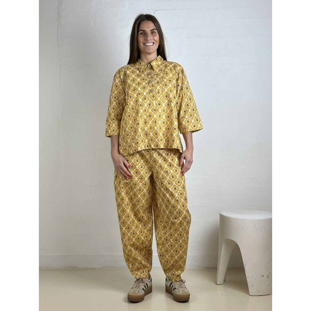 En feminin og karakterfuld bluse i et smukt, grafisk blomsterprint i varme nuancer. Porto Flower Blouse kombinerer et levende og kunstnerisk mønster med en elegant og afslappet silhuet, der gør den både iøjnefaldende og let at style.