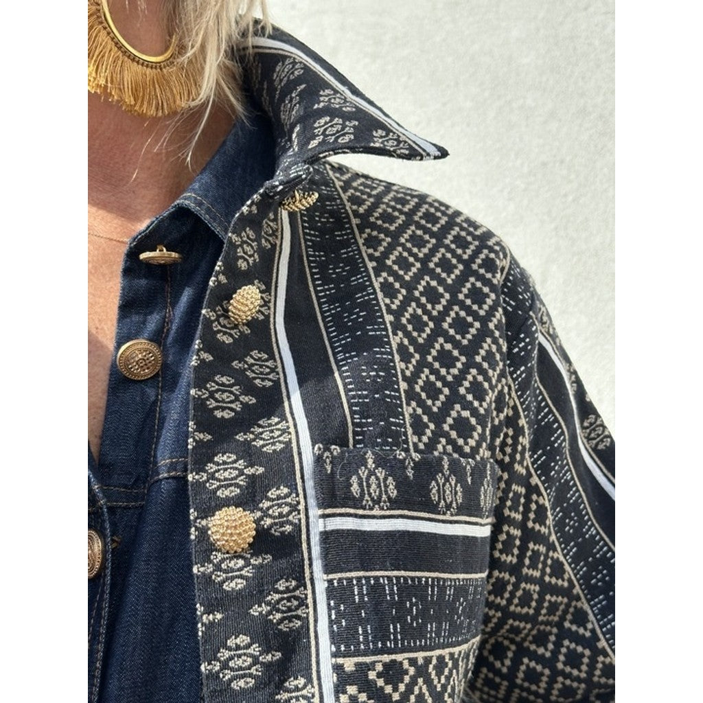 Stort guldsmed broderi på ryggen.