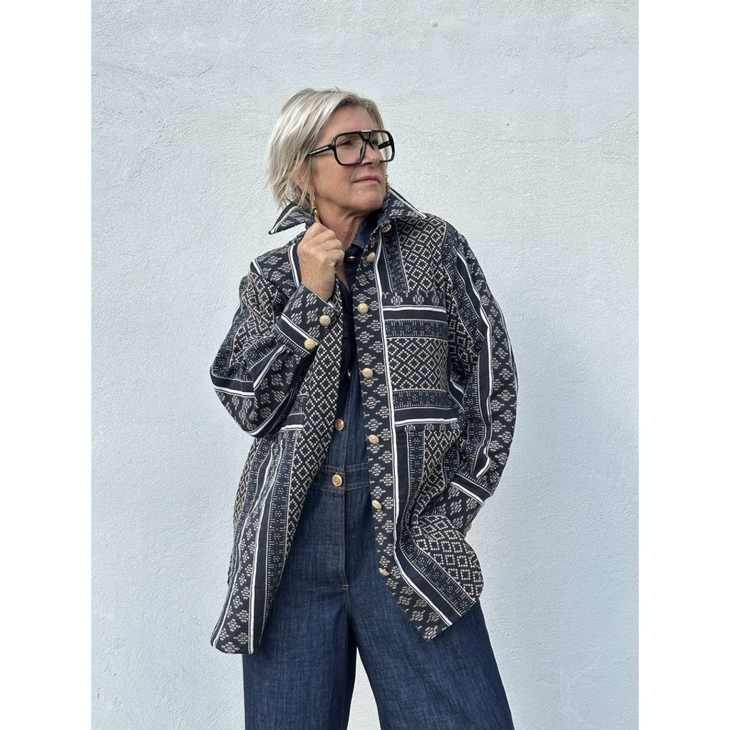Lækker oversized bomuldsskjorte i kraftid denimkvalitet, så man også kan bruge den som en lille jakke.
